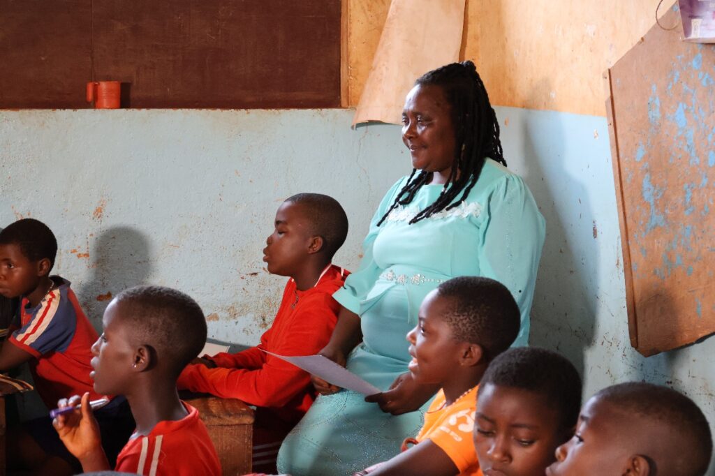 “I follow up the topics taught in class and then transcribe them into Braille, especially Mathematics,” explains Florence Asanji, a Braille instructor at the school. “I give Braille notes to the child so that when the teacher writes examples on the blackboard for sighted pupils, the visually impaired learner can follow using Braille and keep up with the rest of the class.”